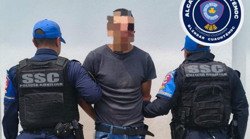 Elementos de la Policía Auxiliar al servicio de Blindar Cuauhtémoc aseguraron a un hombre señalado por su probable participación en un robo con violencia, en el que una mujer resultó lesionada con un objeto punzocortante, en calles de la colonia Morelos.