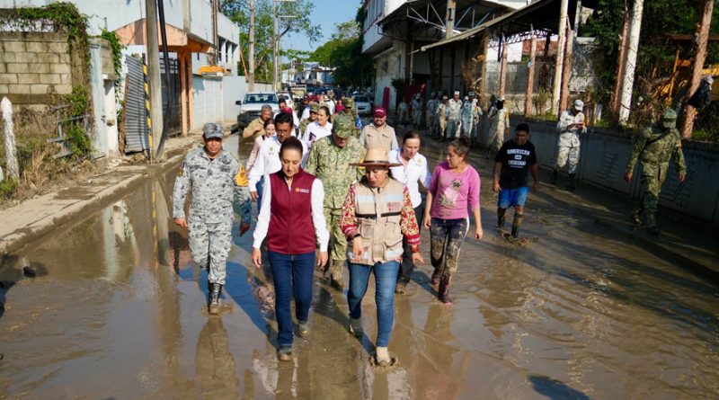 Tempoal, Veracruz.- La Presidenta de México, Claudia Sheinbaum Pardo, supervisó los trabajos de limpieza y apoyo a la población en los municipios de Álamo y Tempoal, Veracruz, como parte de su cuarto día de recorridos por territorio para atender de manera directa a las y los afectados por las lluvias extraordinarias que se registraron del 6 al 9 de octubre.