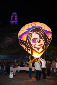 Xiutetelco fomenta la tradición del “Festival entre Vivos y Muertos 2025” con un monumental globo de cantoya